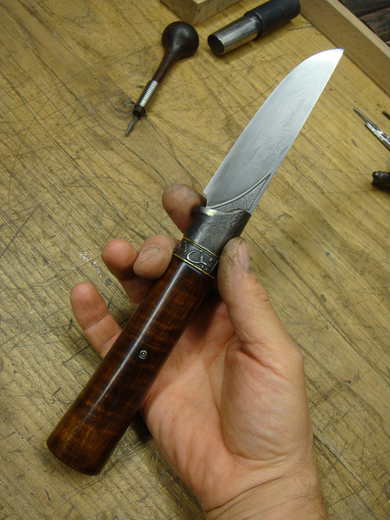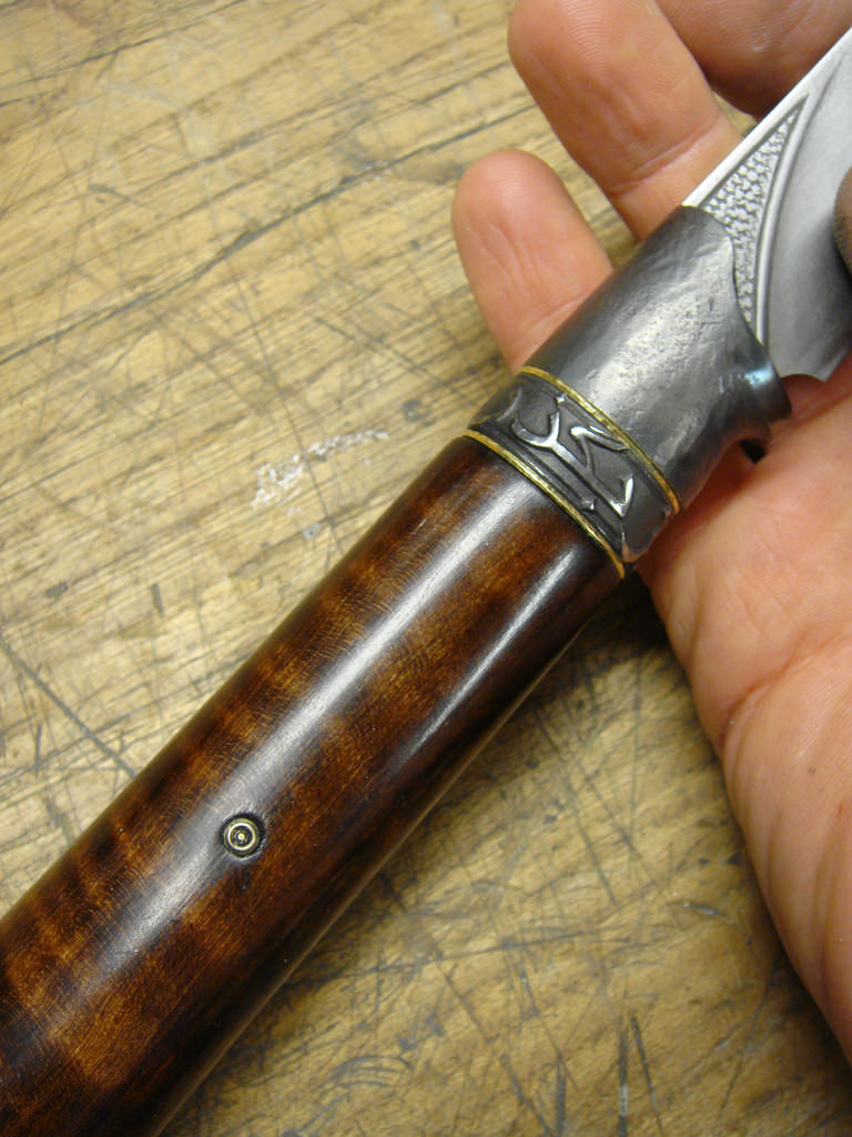 Griff ist Riegelahorn mit Leinöl-Shellac, so wie man auch z.B. Gewehrschäfte traditionell macht.