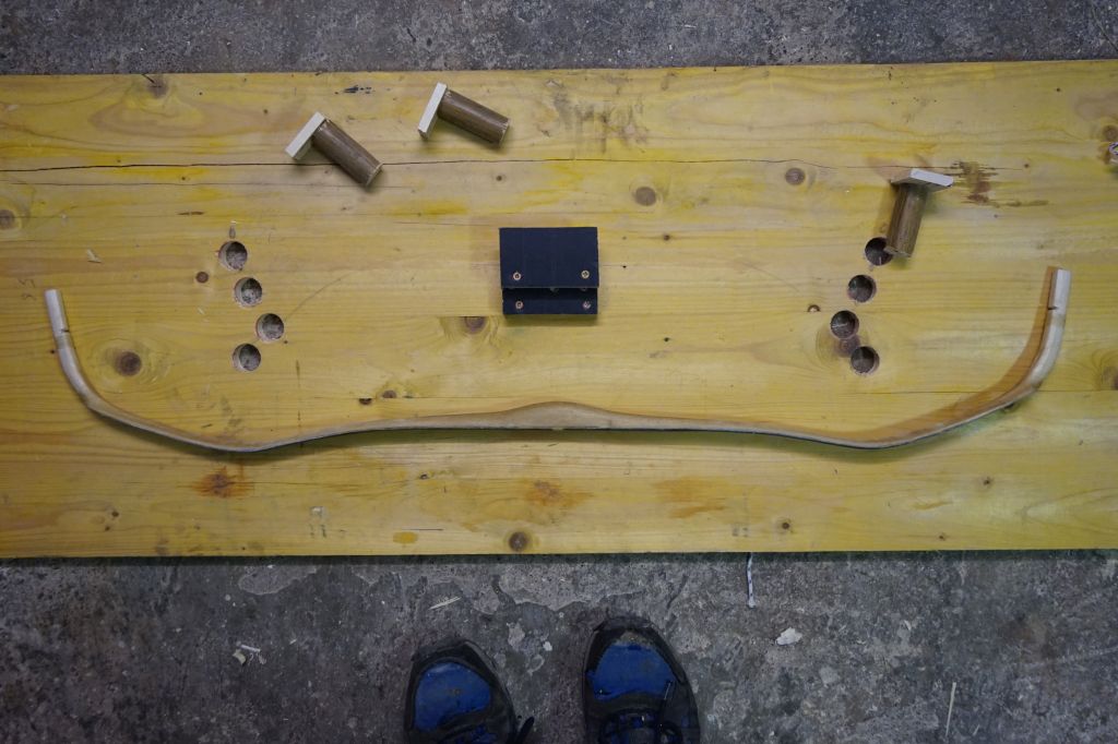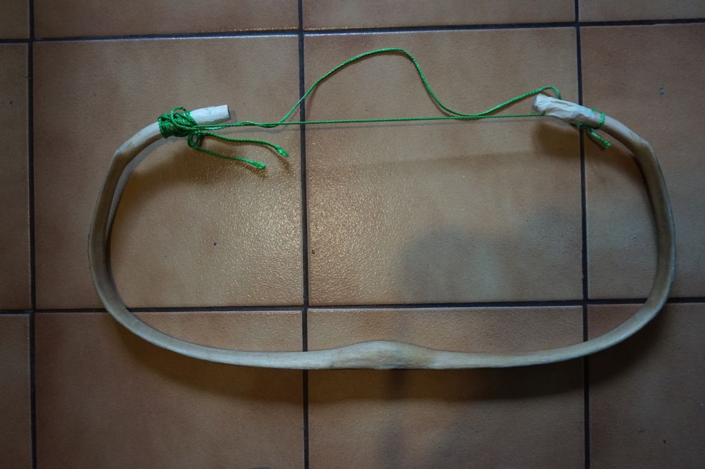 Danach das erste Aufspannen und tataaaa , der Bogen hat es überlebt und nach ein wenig richten sieht es in meinen Augen relativ gut aus. Ich wollte ihn über Nacht aufgespannt lassen, dass er sich an die Biegung gewöhnen kann.