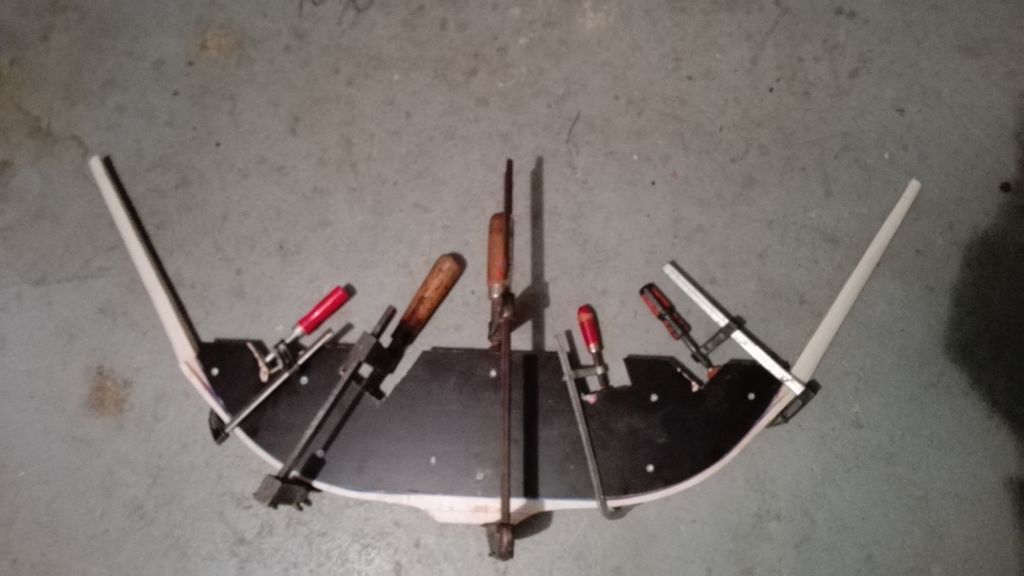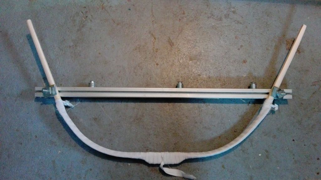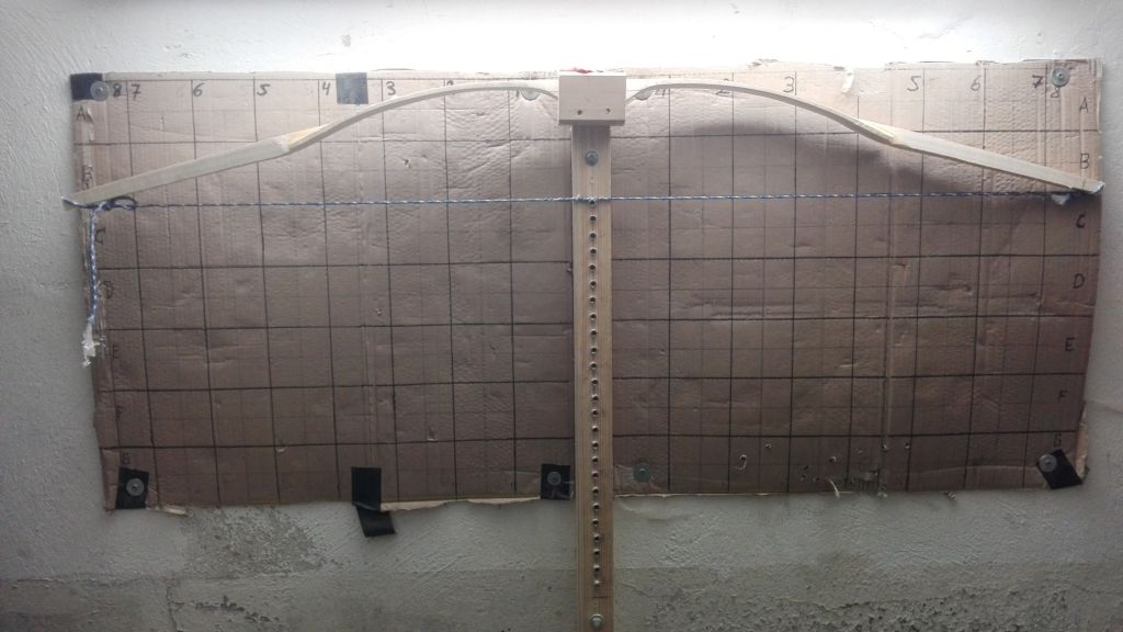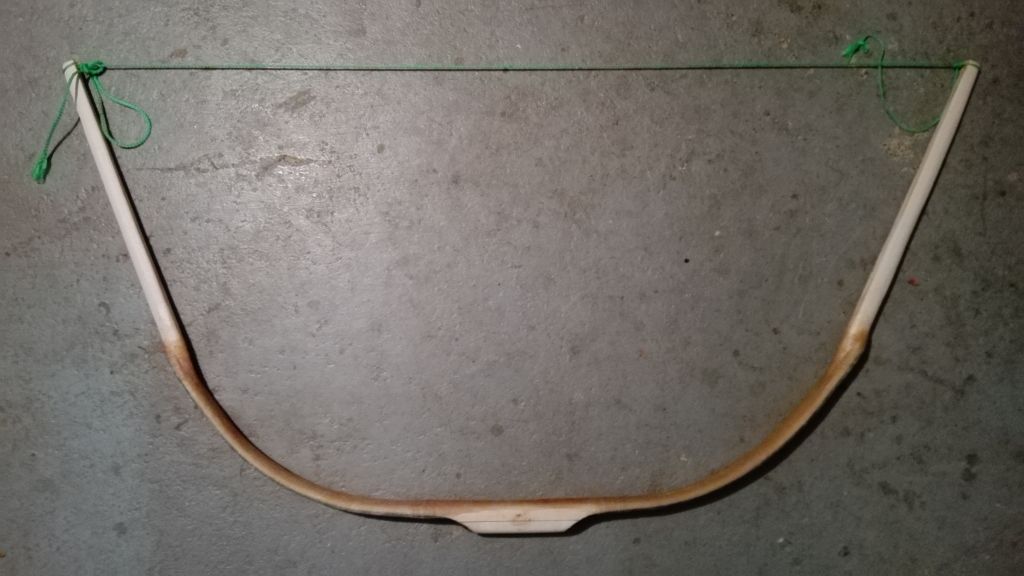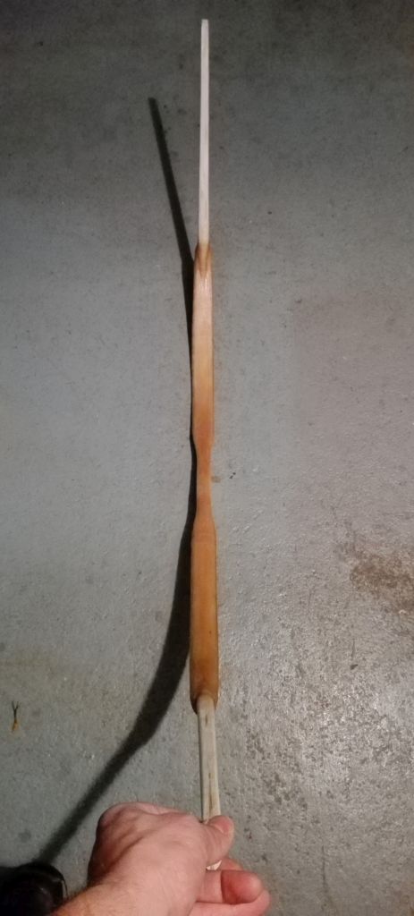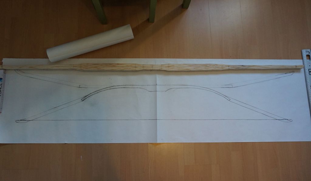 ich war lange am überlegen, ob ich schon über das neue Projekt berichten sollte oder nicht. Nun alles in die Präsentation zu packen, wäre ein bisschen viel. Da das Projekt einen experimentalen Charakter hat, passt es ganz gut hier rein. Ein Kunde wollte eine Mischung aus Langbogen und Reiterbogen haben. Da mir sowieso seit längerem ein Möllegabet auf Steroiden im Kopf rum sauste, war das mein Grundgerüst. Zusätzlich sollte er einen weichen Auszug haben und 45-50#@28'' . Also war schnell klar was draus wird.... Eine Fusion von Möllegabet und Hunnenbogen. Die Nadeln haben nur einen kleinen Winkel, sodass der Bogen um die 1,60cm lang sein kann, ohne stacking zu bekommen.(Vielleicht auchkürzer...mal schauen). Der Kern ist aus Ahorn und hat am Bauch Wasserbüffelhorn und Straußensehnen auf dem Rücken. Um ihn Leistungsfähig zu halten wurden die Nadeln so dünn wie möglich gehalten und er bekam ordentlich Reflex. Nun trocknet er und ich bin gespannt, ob alles nach Plan verläuft und ob ich das Zuggewicht genau getroffen habe. Das habe ich zwar berechnet, aber mit einer Formel von Karpowicz für Osmanen und die haben bekanntlich einen kürzeren Hebel...