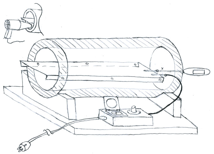 Es reicht übrigens aus, das Rohr ein paar Grade schräg aufzustellen um den Kamineffekt zu erhalten.