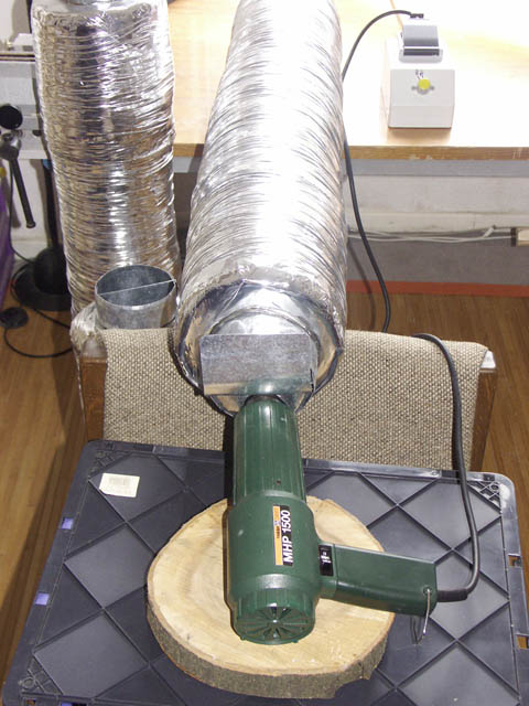 Die Heissluftpistole braucht dann ca. 10 Minuten um 160°C im Rohr zu erreichen.