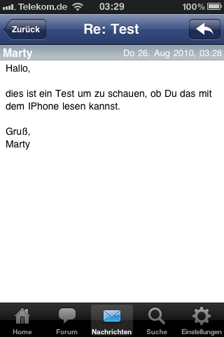 Ich habe auch mehrere Test gemacht, unter anderem das Erstellen eines Beitrags mit dem Iphone inkl. Fotoanhang. Super einfachI Ich stelle mir das genial vor, wenn man dann von einem Turnier Live-Impressionen ins Forum stellt.