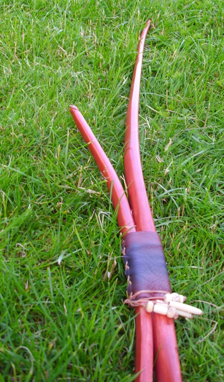 Der Bogen ist aus nem Haselsapling, Mutter- und Tochterbogen sind aus ein und demselben Stück.