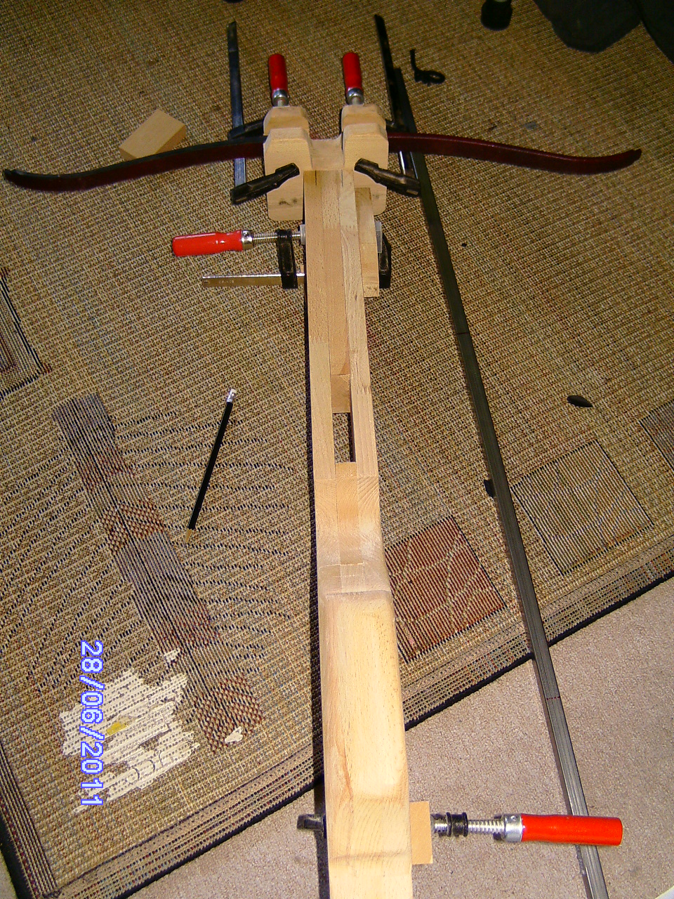 Ich fertige die Präzisonsarmbrust so, das nur die Wurfarme selbst die Energie speichern.
