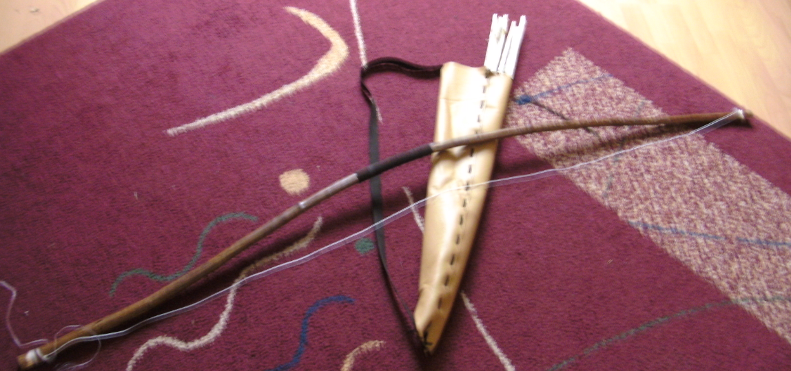 Selbstgebaute Ausrüstungsgegenstände wie Armschutz, Köcher, etc.