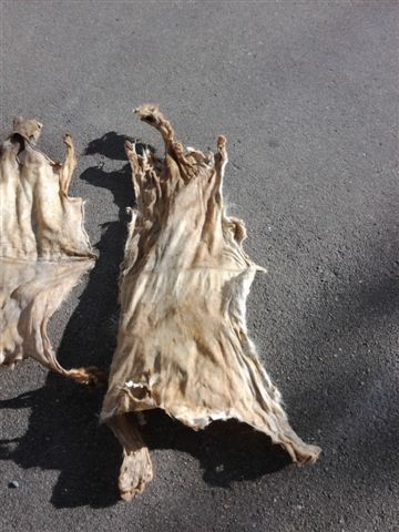 dabei anfallende arbeiten : entfleischen mit hochdruckreiniger oder abschaben ....in aschewasser/brühe einlegen....haare entfernen.