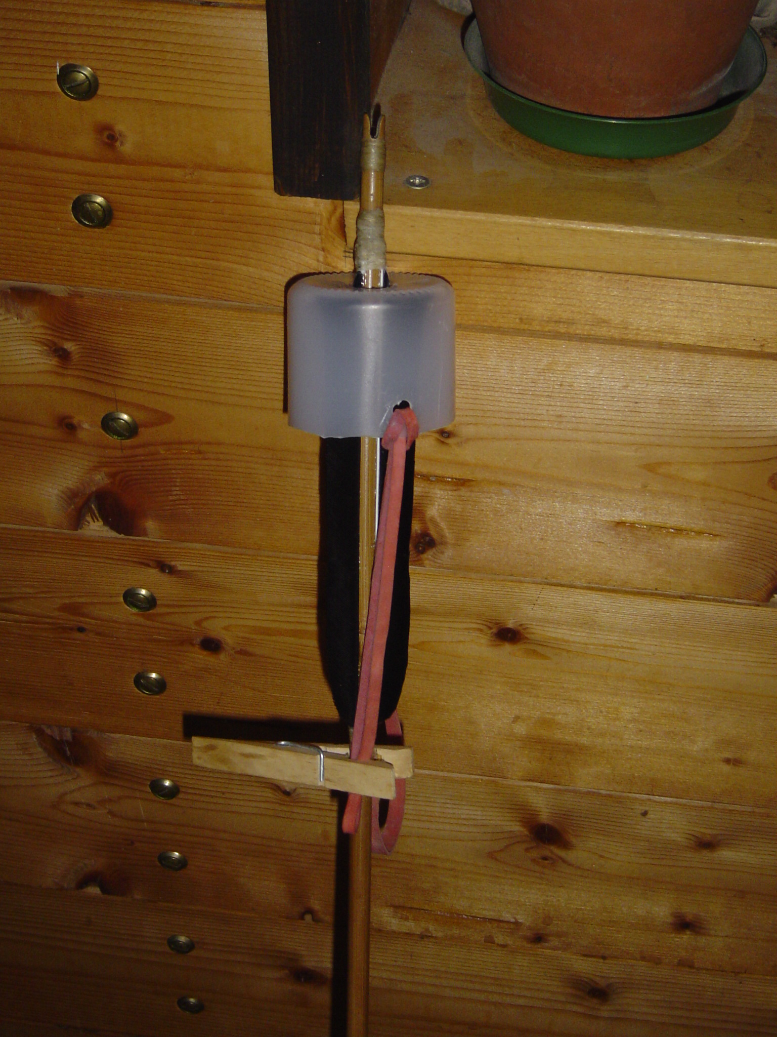 um die hintere Wicklung trotz der überstehenden Federn stressfrei anbringen zu können, hab ich diese Konstruktion verwendet, die zerwuschelt die Federn deutlich weniger als trad. Methoden und es ist daher kein Dämpfen notwendig: