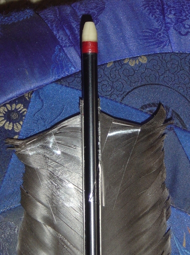 Baue mir gerade auch ein paar schlichte Pfeile für MA - Märkte....und habe mich gestern beim wickeln auch schon Gedanken gemacht wie man die Federn schonen kann........