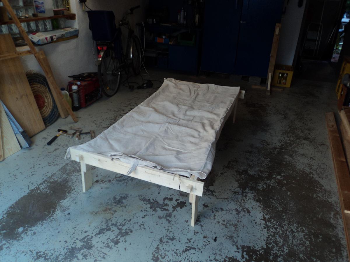 schon wieder wars mir kurz an zwei Abenden etwas langweilig und daraus kam ein Mittelalterseilbett zum transport im Kleinwagen.( Punto )