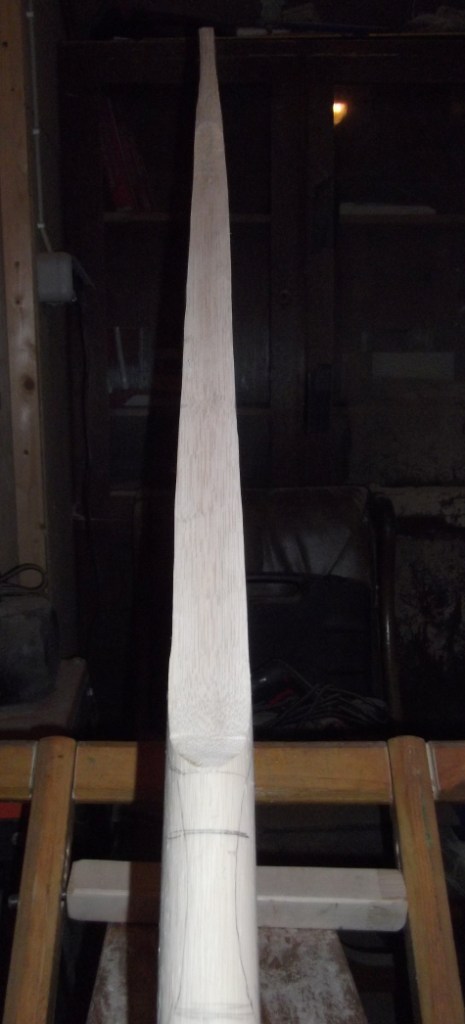 Das Griffstück wird allerdings erst später ausgeschnitzt, wenn die WA soweit in Form gebracht sind...
