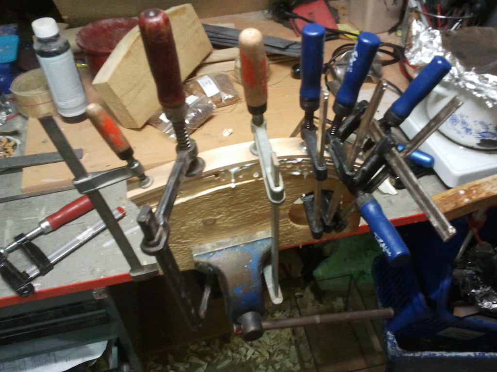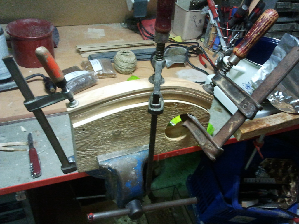 Die biegeformen sind hergestellt aus 2 FichenDielen die ich mit einer schablone nach angaben aus dem Buch