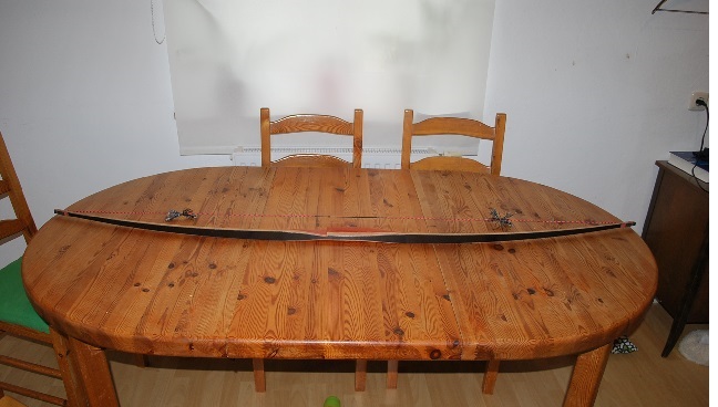 Ich steh einfach auf Amaranth... nicht jeder kann Pink/Lila tragen- mein Opfer aber ziemlich sicher ;) (aber ein Großteil wird ja ohnehin unter dem Leder verschwinden). Die Fades sind unterschiedlich lang um Bogenmitte/Druckpunkt/Shelf zentral zu plazieren und dabei die Wurfarme nicht mit übermäßiger Längendifferenz auszulegen. Um möglichst gleichmäßige Rundungen zu bekommen bestimme ich die Radien mittels 2D Zeichenprogramm und säge diese an der BS mittels swingjig/Radienvorrichtung- so kommt die doch auch zum Einsatz, wenngleich ich mir jegliche Zierverleimung verkniffen hab.