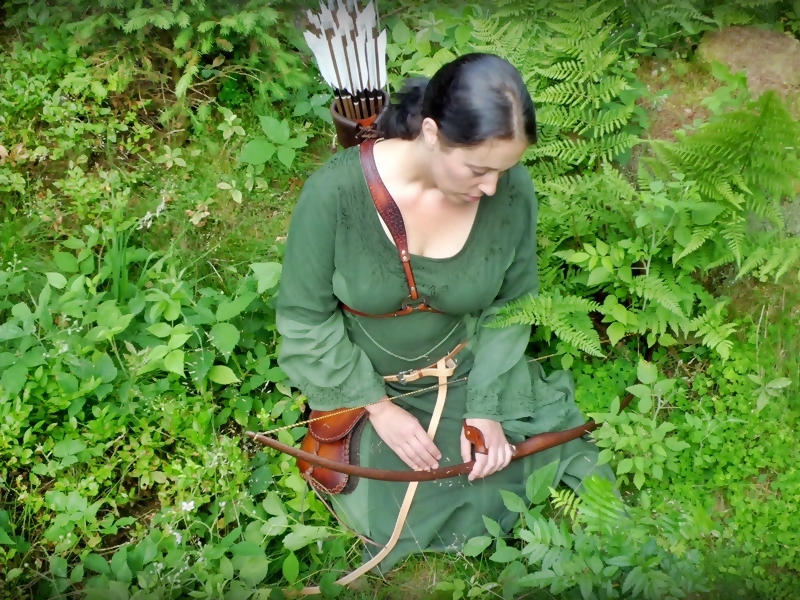 Dieser Rückenköcher mit Dreipunkt-Gurt-System ist aus pflanzlich gegerbtem Leder. Der Gurt ist innen mit Bekleidungsleder leicht gepolstert, sodass seine 581 Gramm Reingewicht für die Trägerin auch im Sommer nicht zur "Last" werden.