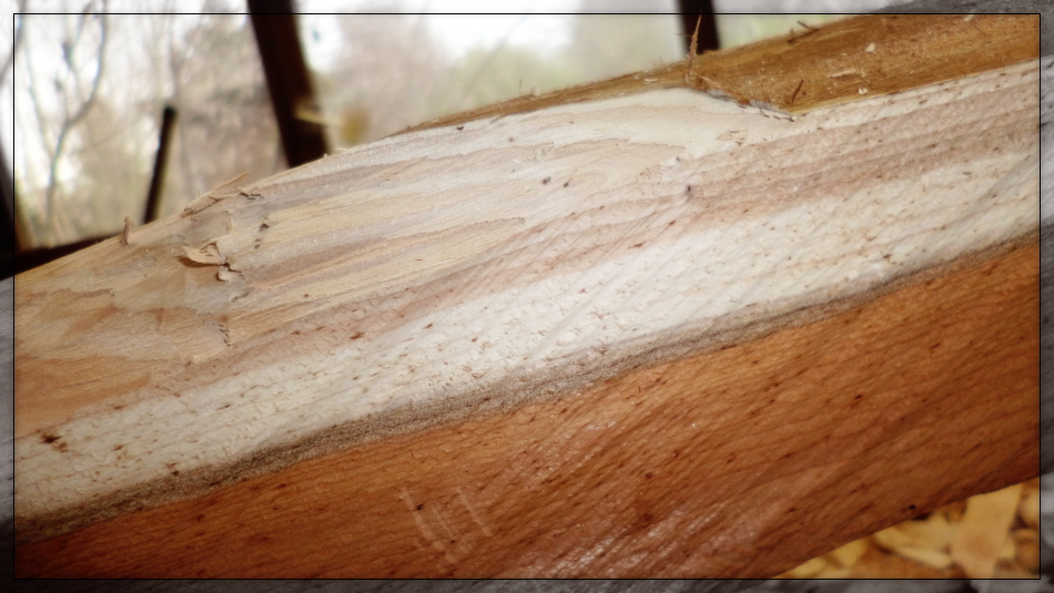 - Hier nochmal der versprödete Splint. Der dunkle Anteil ist kacke, bricht wie versteinerter Bisquit und MUSS weg.