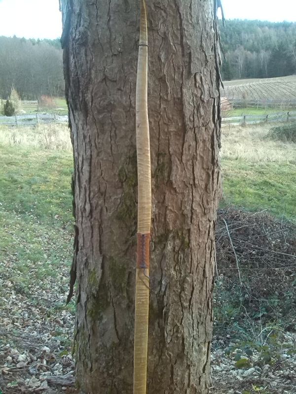 Osage gespleisst mit zwei Lagen Sehne und Birkenrinde belegt.