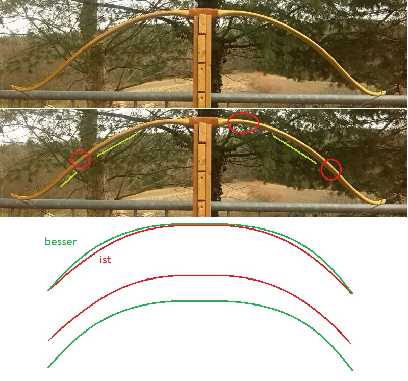 mir selbst kam es da auf den Bildern auch schon spanisch vor, testete ich den Bogen am Haken und