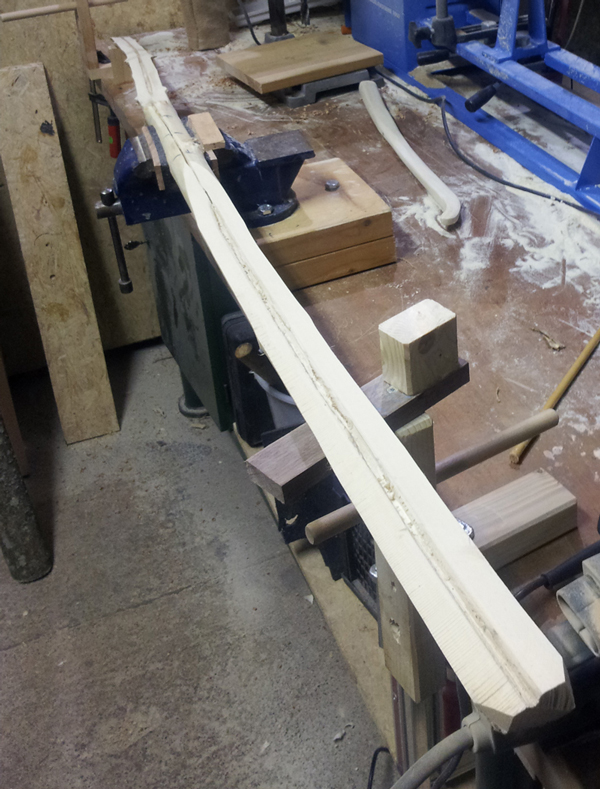 Entweder aufsägen oder einen Entlastungschnitt machen. Bei Holunder weiß man nie so genau wo er sich hindreht. Deswegen ist es auch gefährlich zu viel wegzumachen. Wenn Du Zugang zu einer Kreissäge hast würde ich einen Schnitt bis maximal zum Markkanal machen. Genau in der Mitte des zukünftigen Bauches.