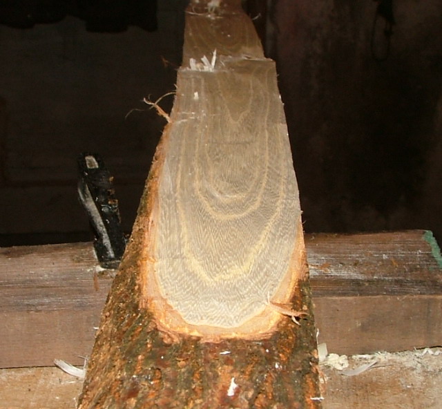 Aber zunächst weiter mit dem Hartriegel, ich hab als erstes die Seiten des Stammes mit dem Ziehmesser entfernt und den ganzen Stamm auf Rohbogenbreite gebracht.