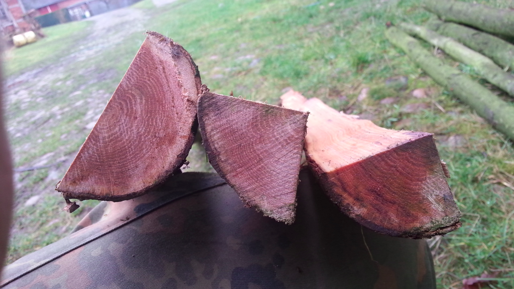 Bei dem haben sich leider im Griffbereich durch das schnelle Trocknen und wahrscheinlich auch in Folge des Spaltens ein paar Spane abgehoben.