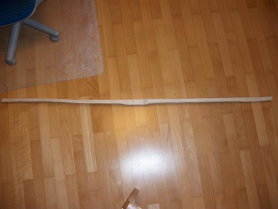 Etwas Theorie: Wenn es darum ginge, den Bogen stärker zu machen, dann wären 1 - 2 mm Facing das Mittel der Wahl. Der Zugstärke der Esche könnte man dann z. B. Schwarznuss, Eibenkern, Osage, Massaranduba oder Hollunder gegenüberstellen.