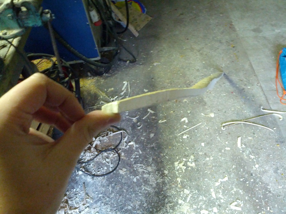 Der Bogen wird Halb-Pyramidal. 4 cm Breit (mehr geht nicht) und ab der Hälfte der Wurfarme schmaler auf 1,5cm an den Tips.