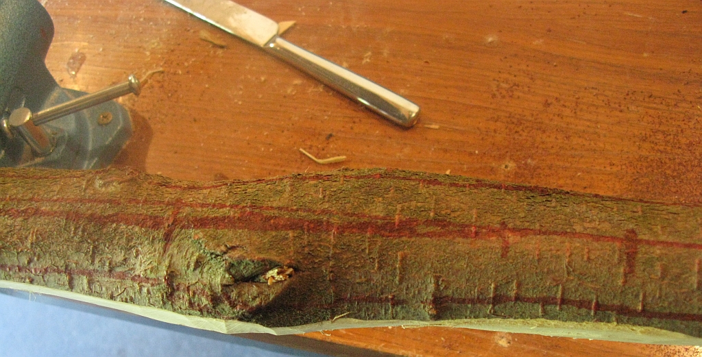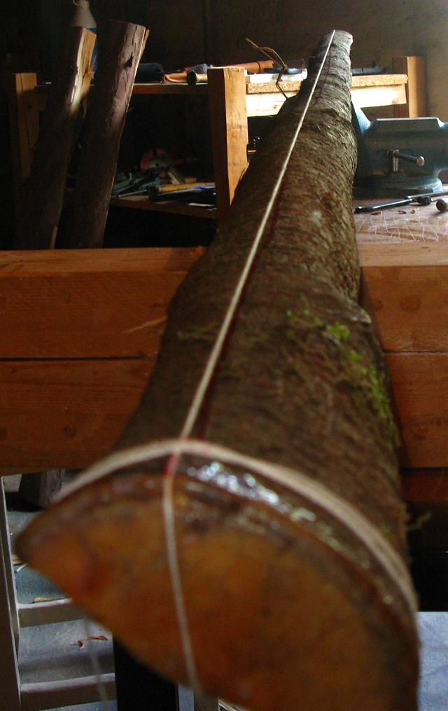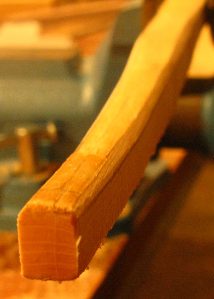 Das hält mich trotzdem nicht davon ab den Bogen in Form zu bringen, die Rinde ist ja ab: