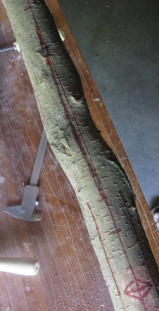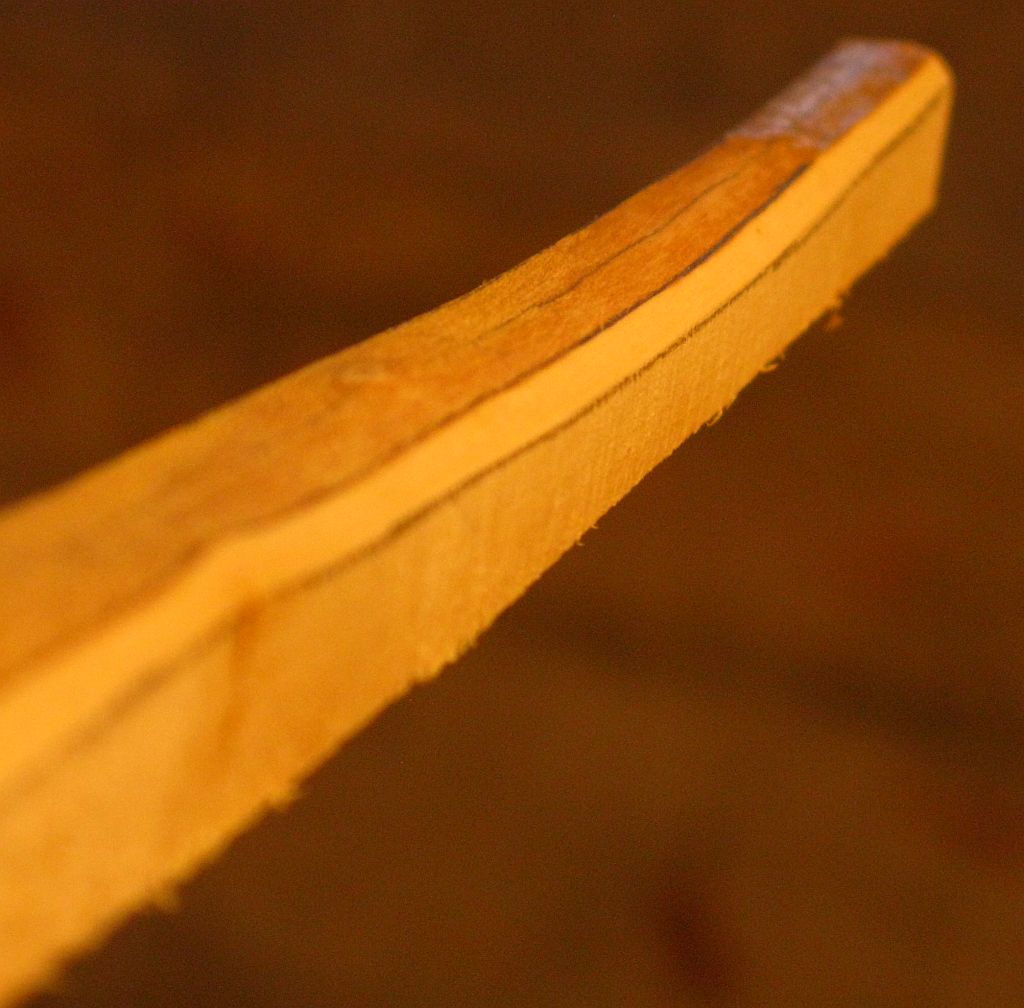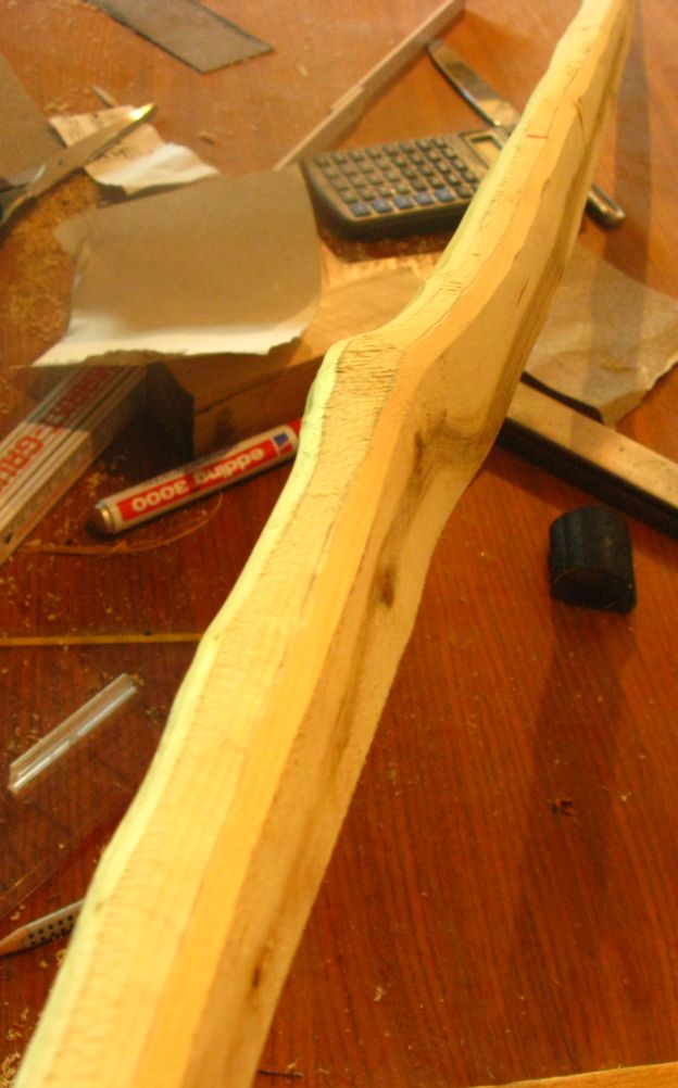 Aber ich möchte dir vorschlagen einen Alemannenbogen mit fünfeckigem Querschnitt zu bauen. Bei dem Holz würde das bestimmt sehr edel aussehen, so eine wahnsinnig hübsch polierte Schlehe im Allemannenstil, ginge bei dem Stave bestimmt gut.
