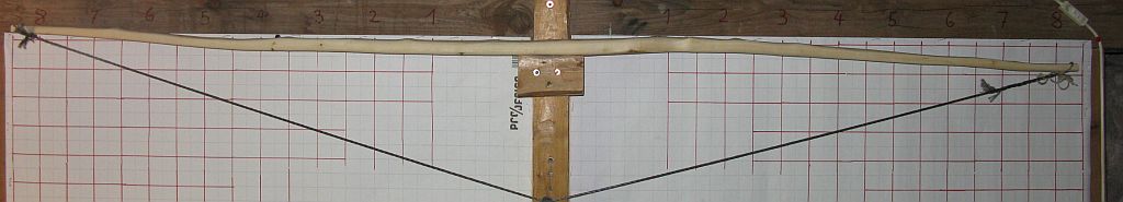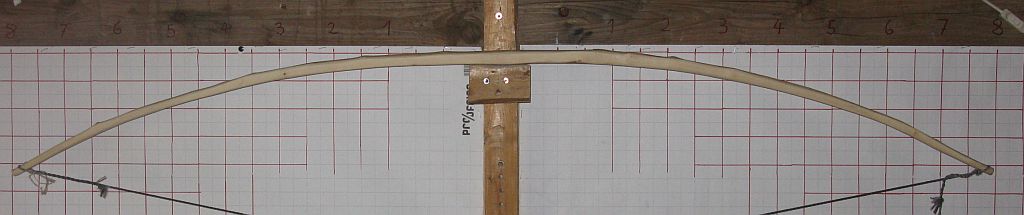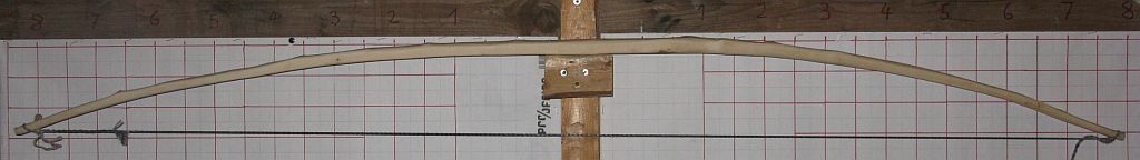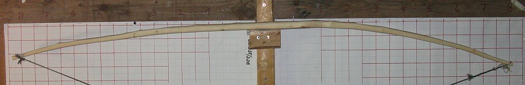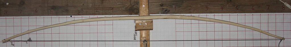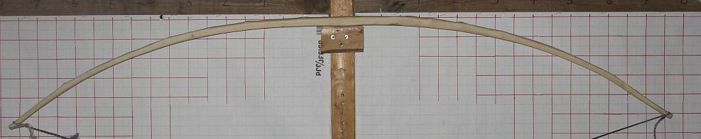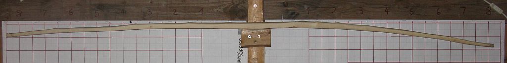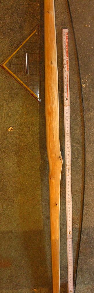Ich schätze, das das Holz viel Set annehmen wird, aber trotzdem gute Wurfeigenschaften haben wird. Einfach aufgrund meiner Erfahrungen mit meinem kurzen Schlehenbogen, der bei 28" und 140cm Länge keine Kompressionsschäden zeigt. Obwohl er ein noch viel krummerer Hund ist