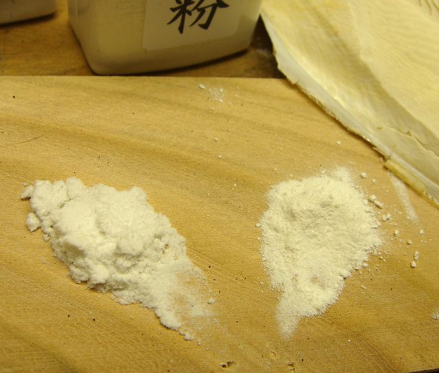 Das "natürliche" Fudeko ist "Ika-Ko" (烏賊粉 ) Tintenfischpulver - hergestellt aus Sepiaschalen. Es enthält Kalk, ist also auch leicht alkalisch, ist aber schön griffig, nicht aggressiv auf der Haut und es hat etwas "Archaisches" verglichen mit dem "weissen Fudeko".