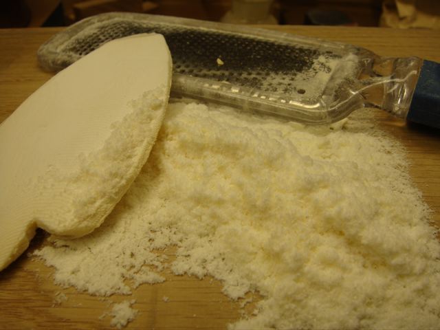Im Goldschmiede-Bedarfshaus gibt es für ca €5 Schalen mit bis zu 35cm - das sind mitunter bis zu ca 200g. Die kann, man reiben wie sie sind und hat in 5 Minuten mindestens einen Jahresbedarf an Fudeko.