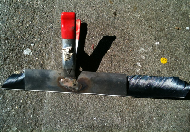 Angel exakt ins Parierstück oder Dein Griffmaterial einpassen: Pinsle Deine Messerangel mit dem Edding ein und Du wirst immer genau sehen wo es noch klemmt. Du siehst es sonst an den Abdrücken, nur weniger deutlich und musst oft gefährlich viel Durck ausüben um Abdrücke zu erzeugen. Und in den Tiefen einer Griffbohrung ist es oft kaum zu sehen. Mit etwas Farbe geht das entspannter.