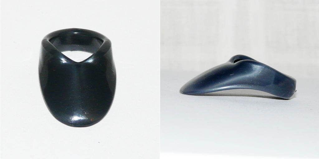 Der Ring auf deinem Bild wirkt eher unpraktisch. Die meisten Daumenringe haben eine große Kontaktfläche mit dem Daumen, damit eine Kraftverteilung passieren kann. Alles Andere tut weh.