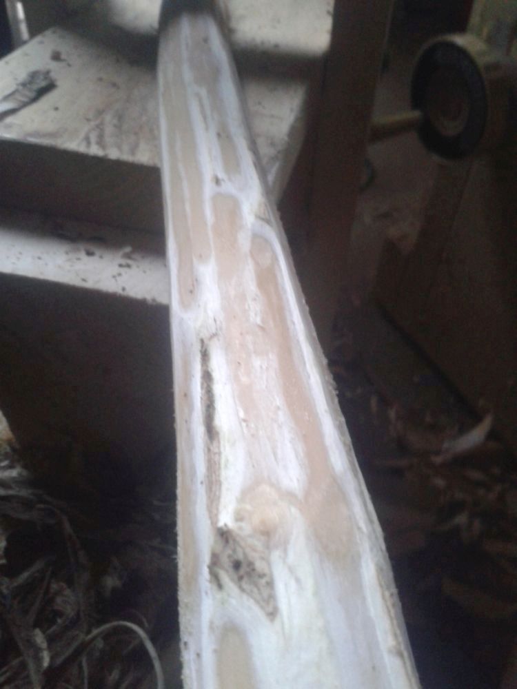 Daheim angekommen erstmal auf 145cm gekürzt und grob den zukünftigen Griff anzeichnen: