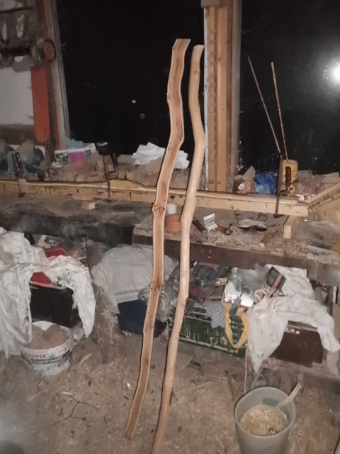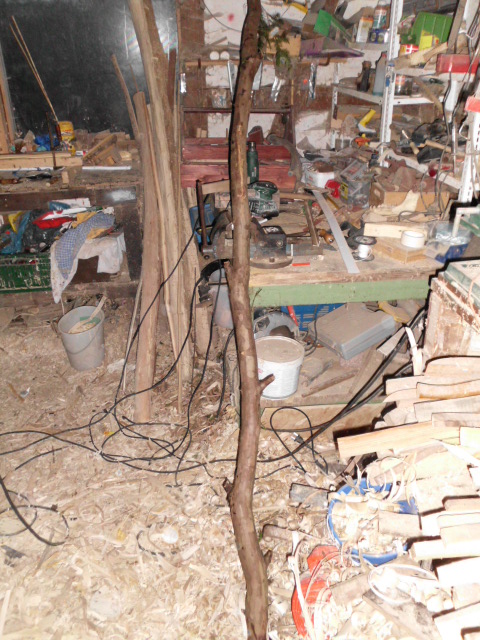 Aufgrund der starken Feuchtigkeit im Holz lass ich es ersteinmal in der kalten unbeheizten Werkstatt wo er sich entspannen kann. Am Sonntag wird es dann in den kühlen Flur wandern.