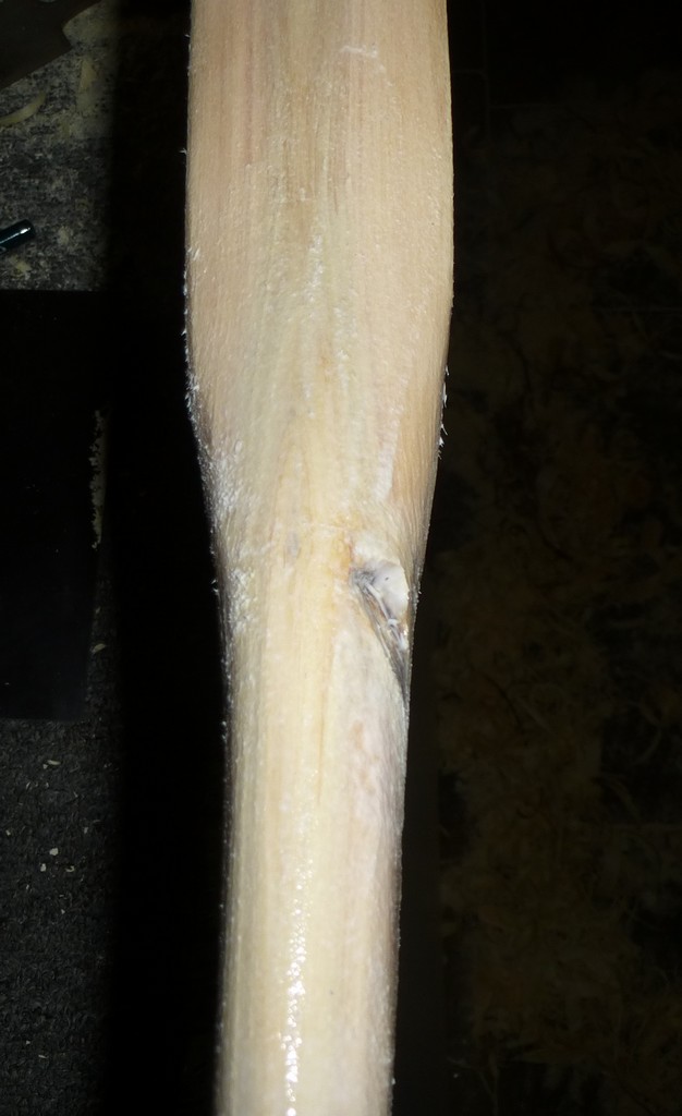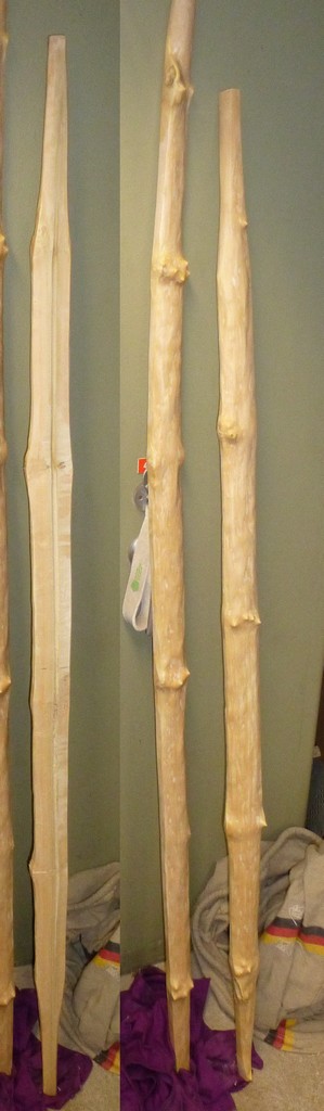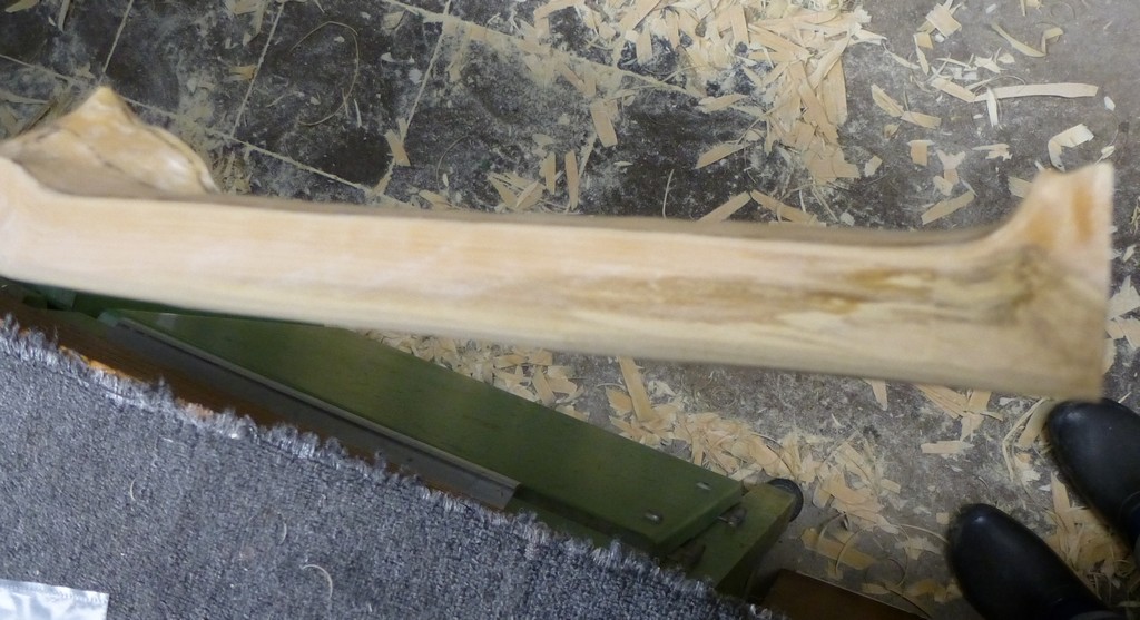 Mit dem Ziehmesser besäumt und beschlossen mit dem langen Teil einen ELB (194cm) zu versuchen. Die andere Hälfte (172cm) soll ein Möllegabet werden. Die zweite Hälfte kommt dann die Tage.