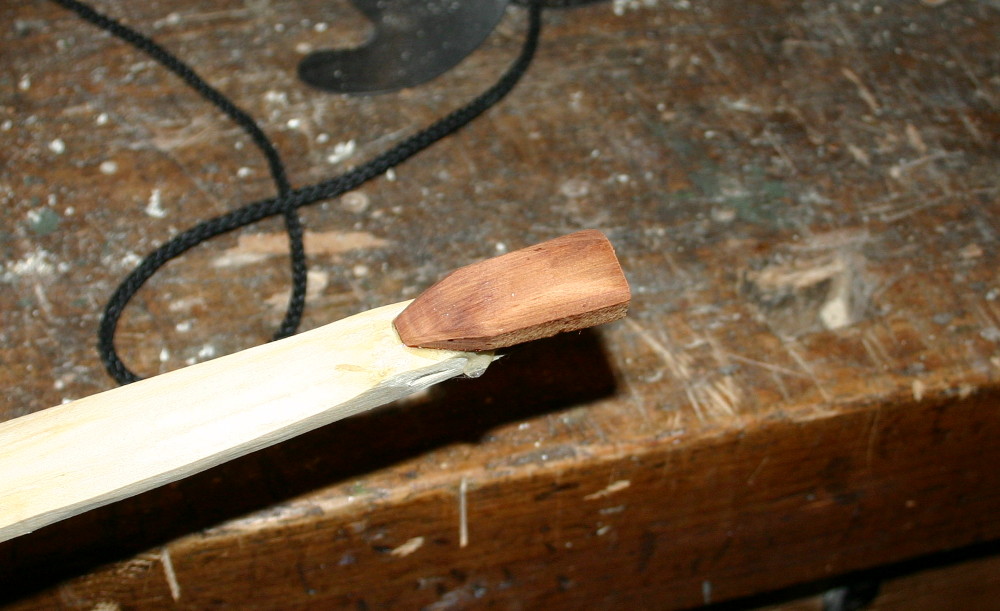 Mitte der Woche wurde getillert. Leider habe ich vom Tillervorgang keine Bilder. Ich denke, ich habs vergessen, weil mich der Stave extrem geärgert hat. Ich hatte den WA mit dem großen Seitenast als unteren Wurfarm vorgesehen und diesen deshalb drei Zentimeter kürzer als den(zunächst) oberen WA belassen.