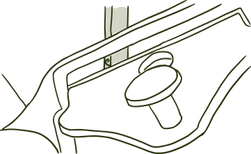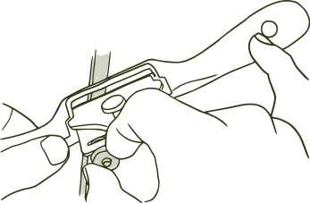 Messerklappe nur so weit anziehen, dass das Eisen nicht wegrutscht, aber immer noch von Hand bewegt werden kann. Trimmschrauben etwa eine Umdrehung lösen, Eisen nach hinten ziehen.