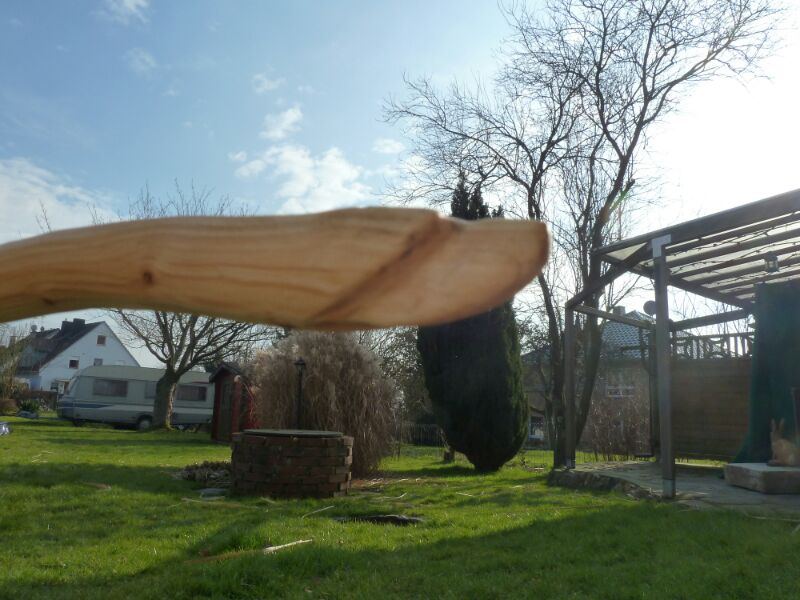 Den Stave habe ich einfach geerntet, die Enden versiegelt und dann ein Jahr draußen unter dem Dach getrocknet.