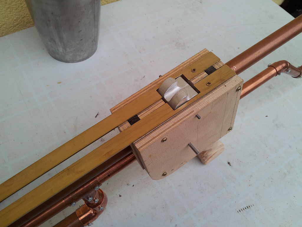 Und von der Belastung durch die mehrfache Stützkonstruktion (Mittleres Rohr mit den Messingschienen und dem unteren Rohr) gar nicht so leicht zu beurteilen.