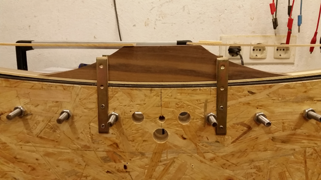 So, hier noch ein Bild, dass die Kontur des Mittelstücks in der Form zeigt. An beiden Seiten liegt (ohne Spannung) das Bambuslaminat auf. Vielleicht hilfts für die Einschätzung weiter.