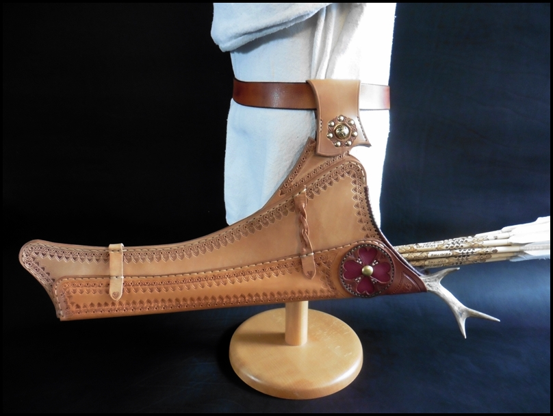 Tolle Arbeit wie immer. Aber wie wird mit dem Köcher verhindert, dass der Gürtel nach unten gezogen wird? Das hat sich mir noch nicht erschlossen. Ansonsten: Wenn ich reichlich Geld hätte, würde ich mich in Deinem Sortiment zu gerne einmal umsehen...