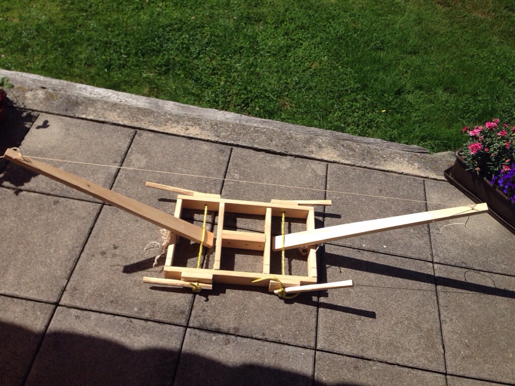 Nach langer Absenz vom FC melde ich mich zurück mit einem ersten funktionierendem "Bogen". Wir hatten alte Bettlatten herumliegen und da kam mir die Idee endlich die Bowlista zu bauen. Im Prinzip ist es eine römische Manuballista, aber als Handbogen. Inspiration waren die zwei Bilder in der TBB4. Der Bau erwies als eher dirty als quick, aber seis drum.