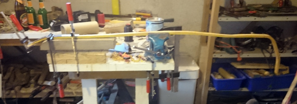 Mit Sehne würd es 100% funktionieren aber ich will wissen wie Druck belastbar Osage wirklich ist deswegen kommt der blanke Horror für jeden Bogenbauch drauf, 3 Lagen unidirektionales Flachsfasergelege in Epoxy.