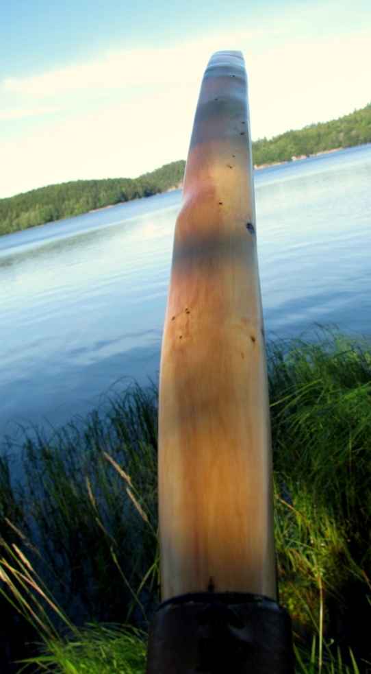 Entstanden aus einem kurzen, verästelten aber feinringigen Eibe-Stämmchen aus dem ich die besten Stücke mühsam herausgeschnitten hab. Die Take-Down-Hülse hab ich mir passend dazu bestellt. Ich wollte gerne was kleines handliches, einen Reisebogen. Hatte nun im Schwedenurlaub endlich Gelegenheit zum Einschießen. Wirft subjektiv sehr gut, Die Eibe federt geschmeidig und ich liebe einfach das Burgunderdesign. Der charakteristische Setback im Griff fehlt bei diesem Bogen natürlich, macht aber nichts.