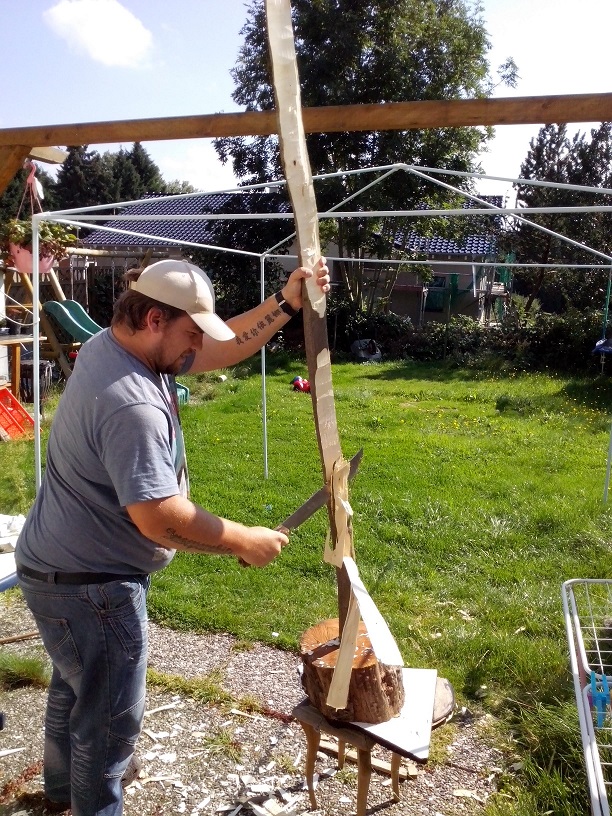 So hier wie angekündigt ein paar Bilder von meinen ersten Versuch einen Selfbow zu bauen.War eine tolle Erfahrung bisher alleine mit dem Wuchs zugehen die Faser zulesen,einz weis jetzt schon es werden noch viele folgen allein schon weil kein Bogen den andern gleicht.Bin mal gespannt was ihr dazu sagt der Bogen wird erst im Dezember weiterbearbeitet.Was mir schwer fällt ist als Tischler ist das es keine geraden Linen gibt aber das ist das was mich reitz das Holz zeigt mir den Weg!!!