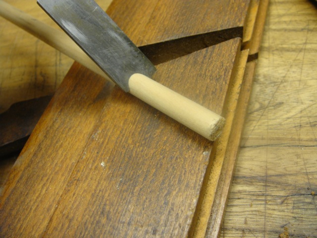 ein kleiner Hobel verwendet wurde, der in der Sohle ein halbkreisfoermige Nut mit ungefaehr Pfeildurchmesser hatte.