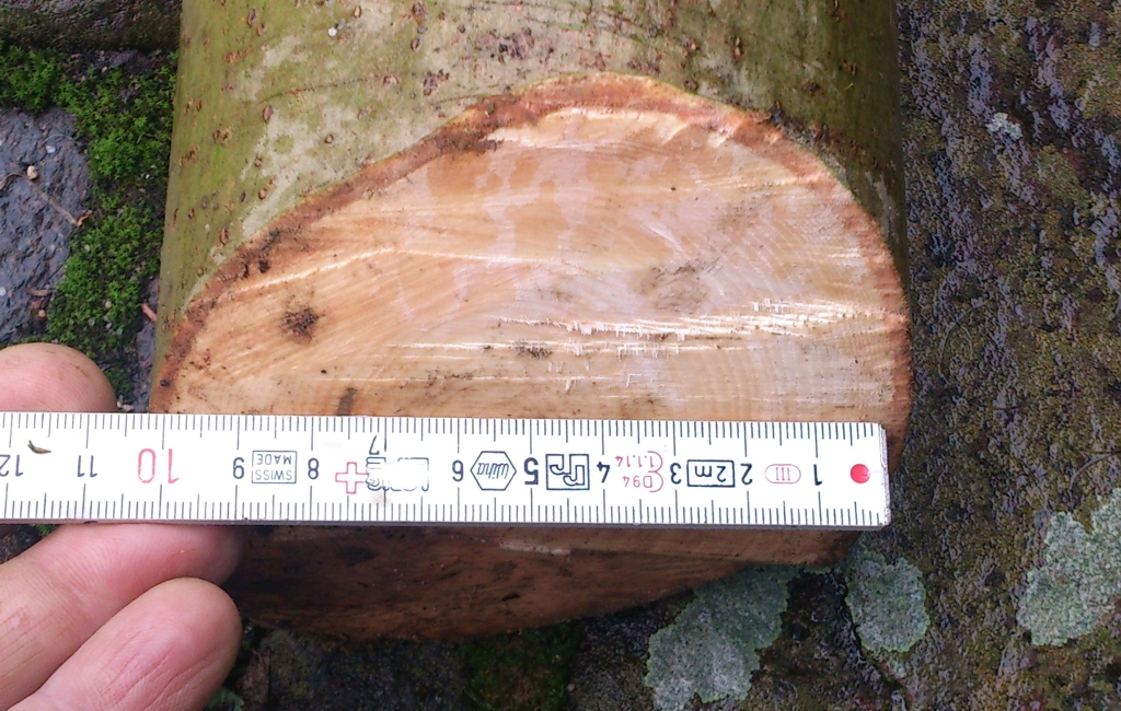 Liegt seit den 3 Tagen als ganzes mit Rinde im Freien wir hatten die letzten 3 Tage durchgehend unter Null, sollte also so gut wie frisch gesägt sein.