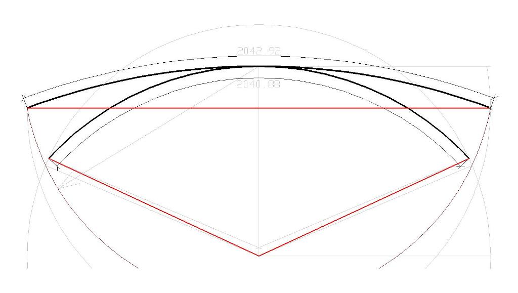 Diese Rechnung geht leider nicht auf. Meine Beispielszeichnung hat eine Sehnenlänge von 2000mm der Bogen darüber 2043mm