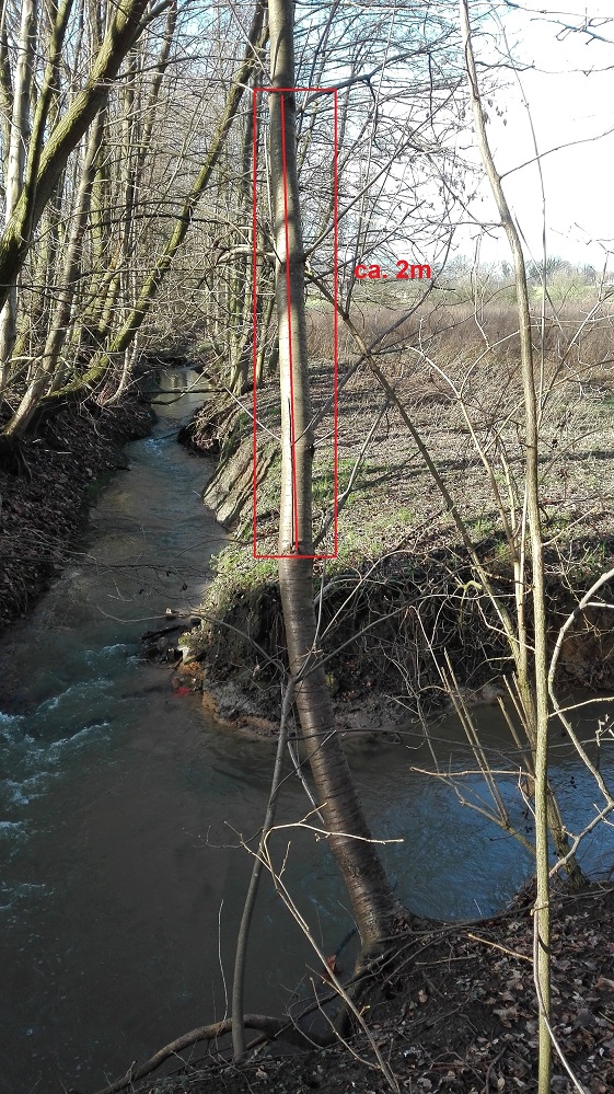 Servus, da der Baum ja am Bachrand steht würde ich Reaktionsholz vermuten?