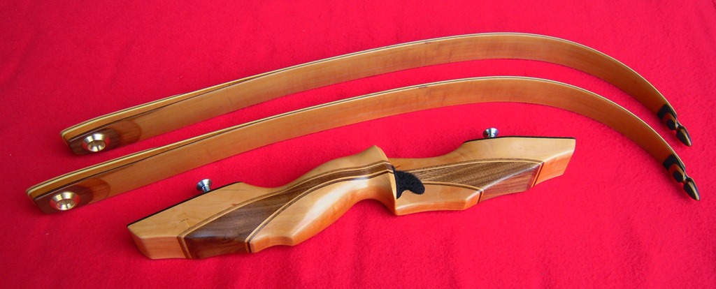 auch wenn ich hier schon lange nichts mehr präsentiert habe heißt das nicht, dass ich untätig war. Habe in letzter Zeit mit meinen Take Downs etwas herumprobiert (WA-Länge, -Design u. -Winkel etwas optimiert, Griff etwas anders geformt usw). Heute möchte ich euch einen meiner zuletzt gebauten zeigen. Zuggewicht moderate 30#. WA-Kernlaminat besteht aus Holler. Zierfurnier am Rücken ist indischer Apfel. Griff wurde aus Birne u. Nußbaum gefertigt. Tips bestehen aus Micarta u. Zwetschke.